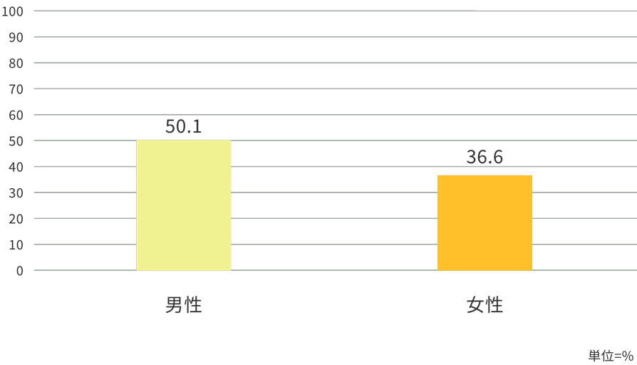 性別では、女性の36.6%に比較して、男性は50.1%と高い傾向が見られます。